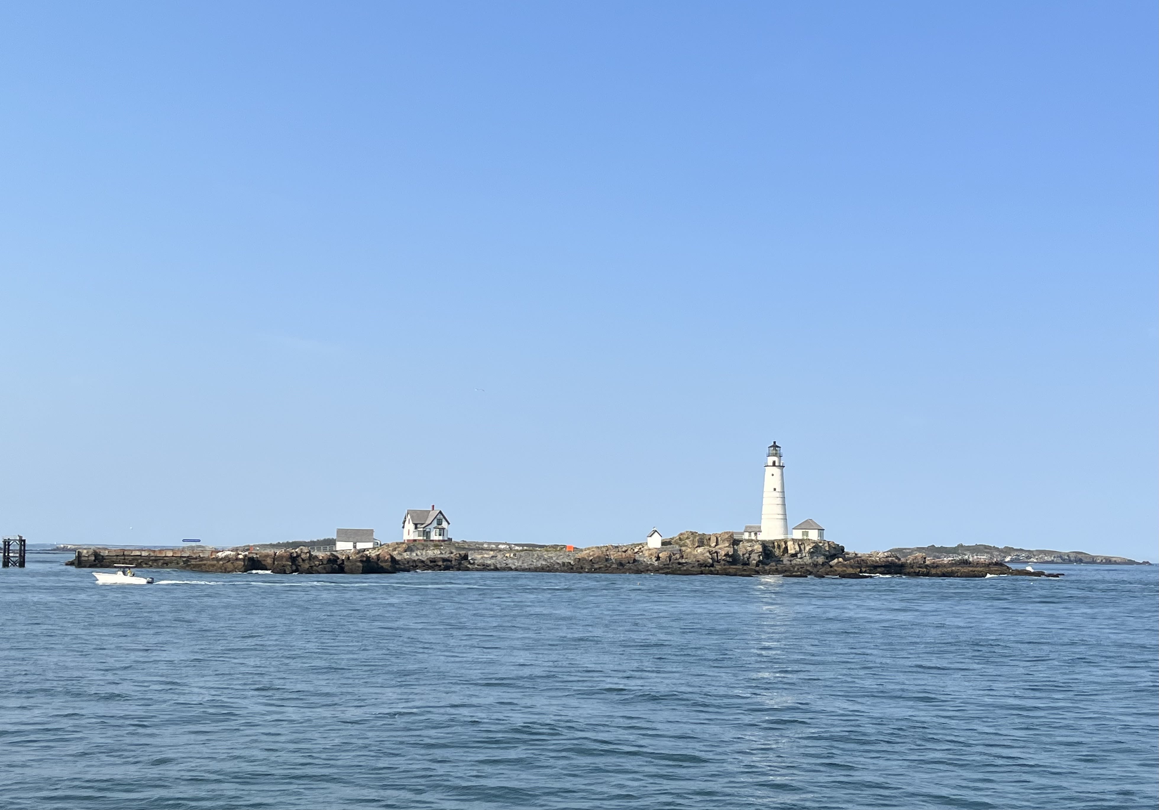Boston Light is located on Little Brewster Island in outer Boston Harbor. Little Brewster is just one of 34 islands in the harbor.